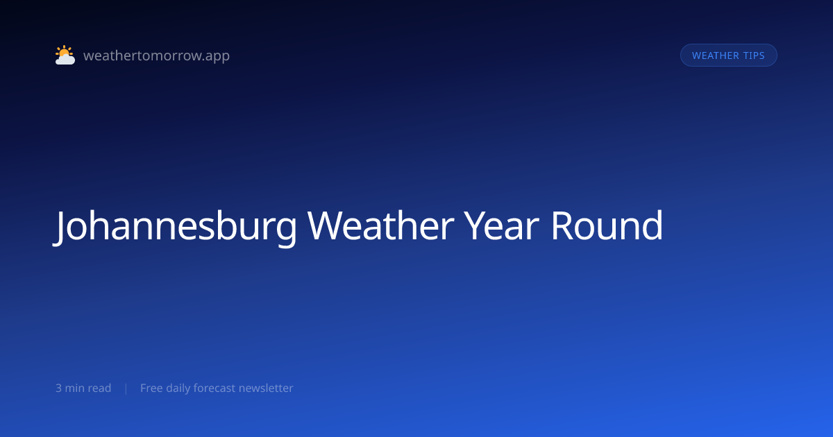 Johannesburg, South Africa — perched at 1,750m altitude, Johannesburg enjoys warm days, cool nights, and spectacular afternoon thunderstorms in summer. Whether you are planning a holiday or a business trip, understanding the weather helps you pack right and make the most of your time.