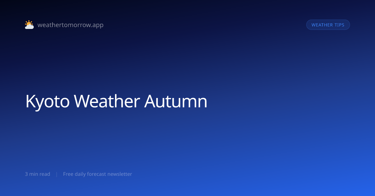 Kyoto, Japan — autumn transforms Kyoto's 2,000 temples and gardens into a canvas of crimson, gold, and amber — one of the world's most beautiful seasonal displays. Whether you are planning a holiday or a business trip, understanding the weather helps you pack right and make the most of your time.