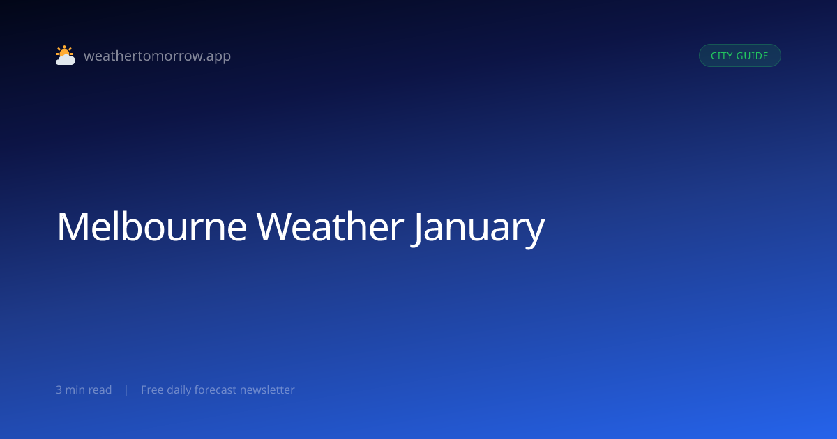 Melbourne, Australia — January is peak summer, the Australian Open tennis fills the city with energy, and Melbourne's famous unpredictable weather keeps things exciting. Whether you are planning a holiday or a business trip, understanding the weather helps you pack right and make the most of your time.