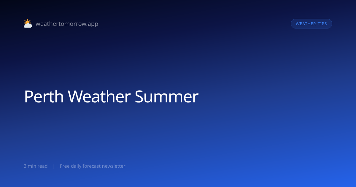 Perth, Australia — summer in Perth is hot, dry, and gloriously sunny — perfect for beach days, wine regions, and the stunning Indian Ocean coastline. Whether you are planning a holiday or a business trip, understanding the weather helps you pack right and make the most of your time.