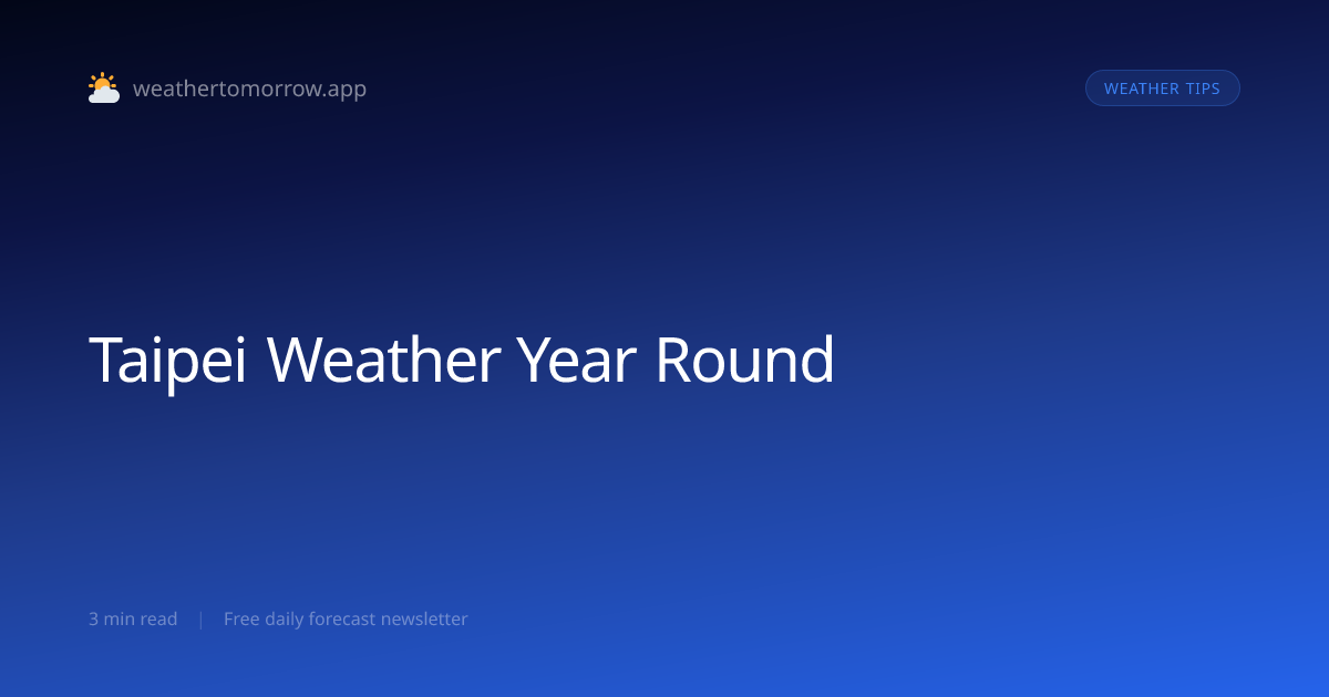 Taipei, Taiwan — rain is common year-round, but Taipei rewards visitors with incredible night markets, hot springs, and lush mountain scenery just minutes from the city. Whether you are planning a holiday or a business trip, understanding the weather helps you pack right and make the most of your time.